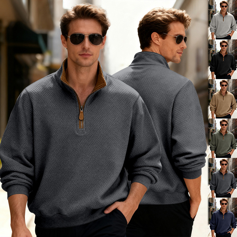 👨【50% отстъпка】🧥【S-3XL】Мъжки зимен плетен пуловер с висока яка, свободен модел, дебела комбинирана материя, пълен цип, подходящ за ежедневно носене, работа и пътувания, топъл и удобен.