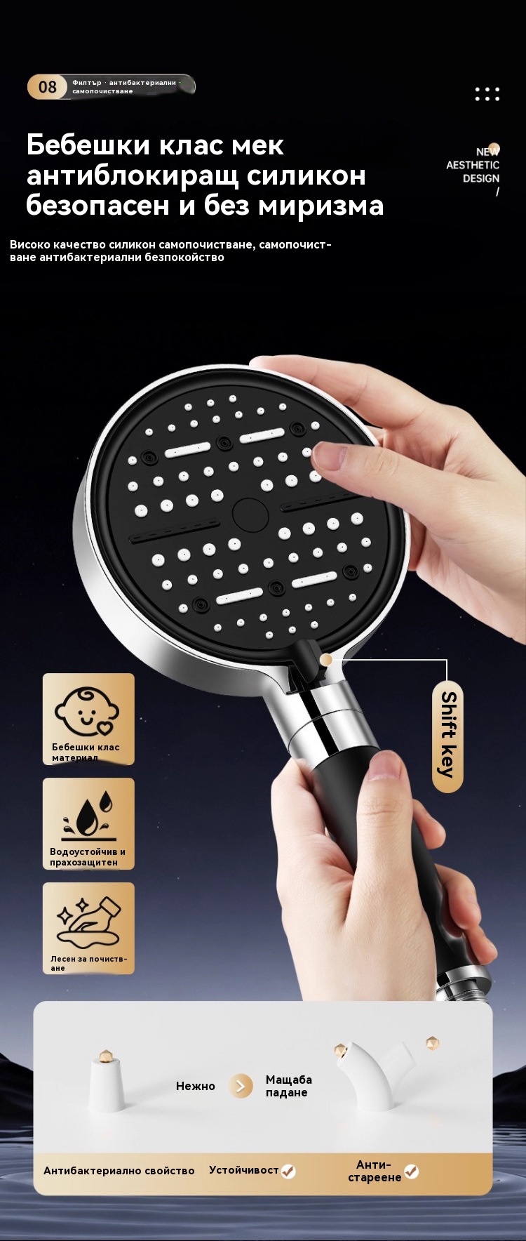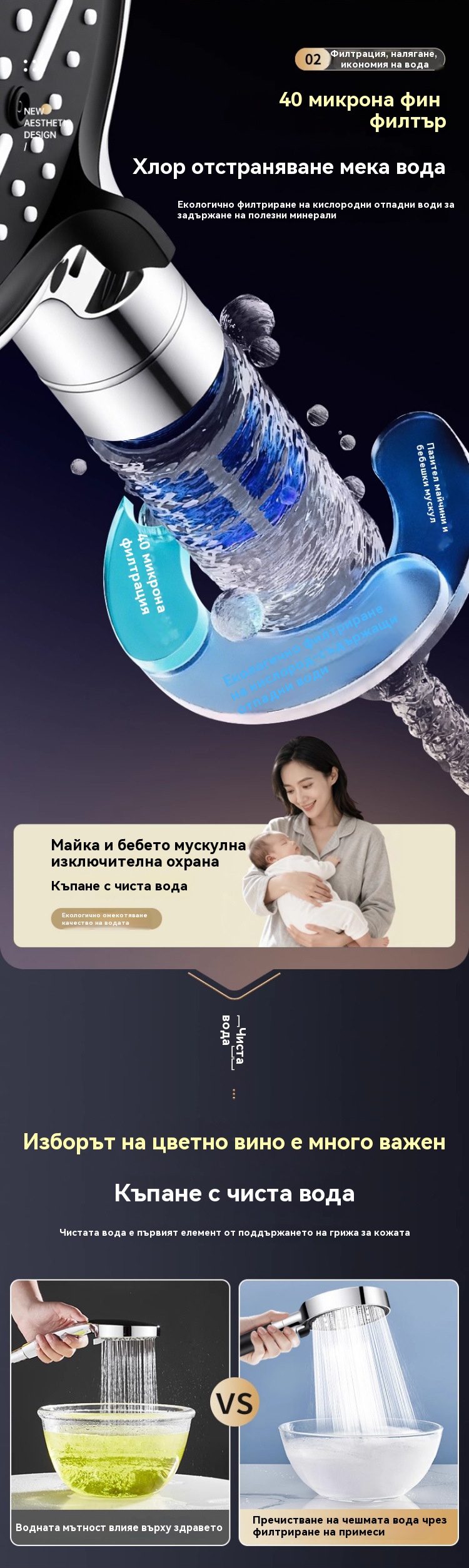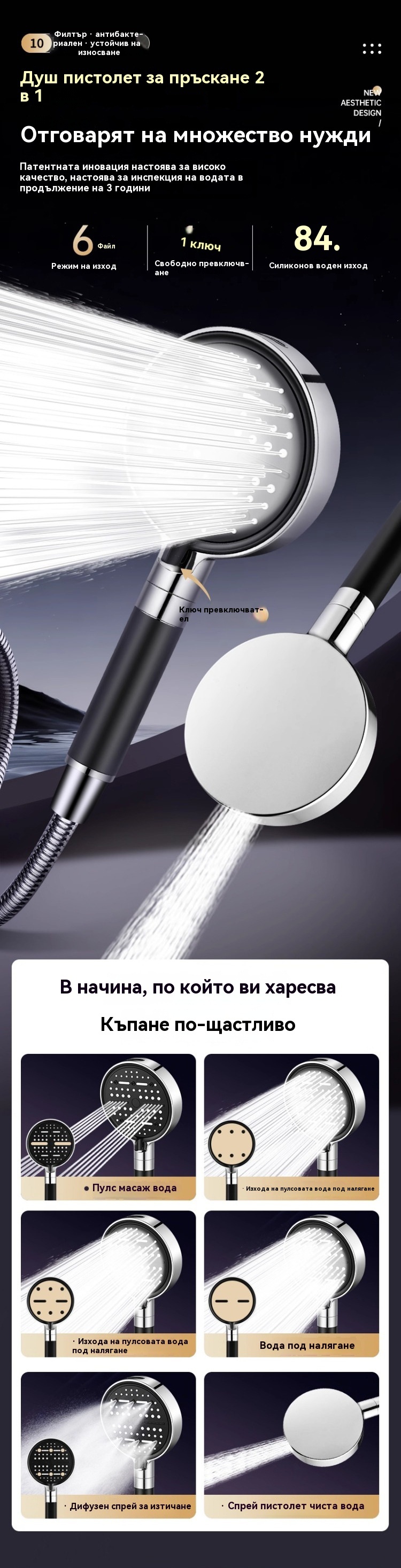 🎊【50% отстъпка от нови продукти】💦🚿 Душ слушалка с голям панел и 6 режима – мощно филтриране, силен натиск и по-качествена вода!