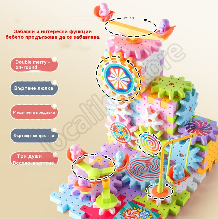 🎁【Горещи продажби - 50% отстъпка】🔥Електрически строителни блокове ★Въртяща се играчка ✨Пъзел с големи частици 🌈Вечно променящ се рай за деца