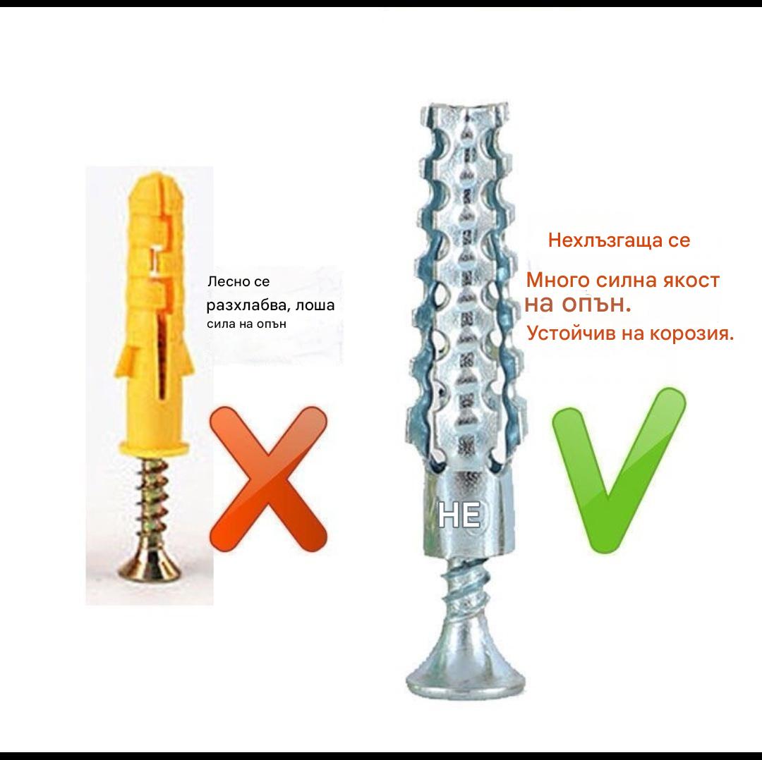 【100 комплекта】🔩 Супер здрав назъбен метален анкер за здраво закрепване към всяка стена