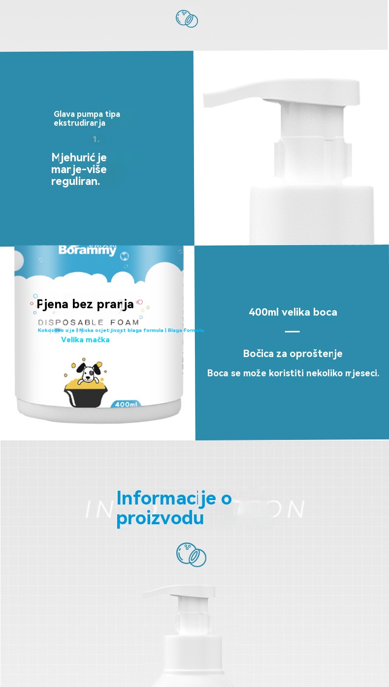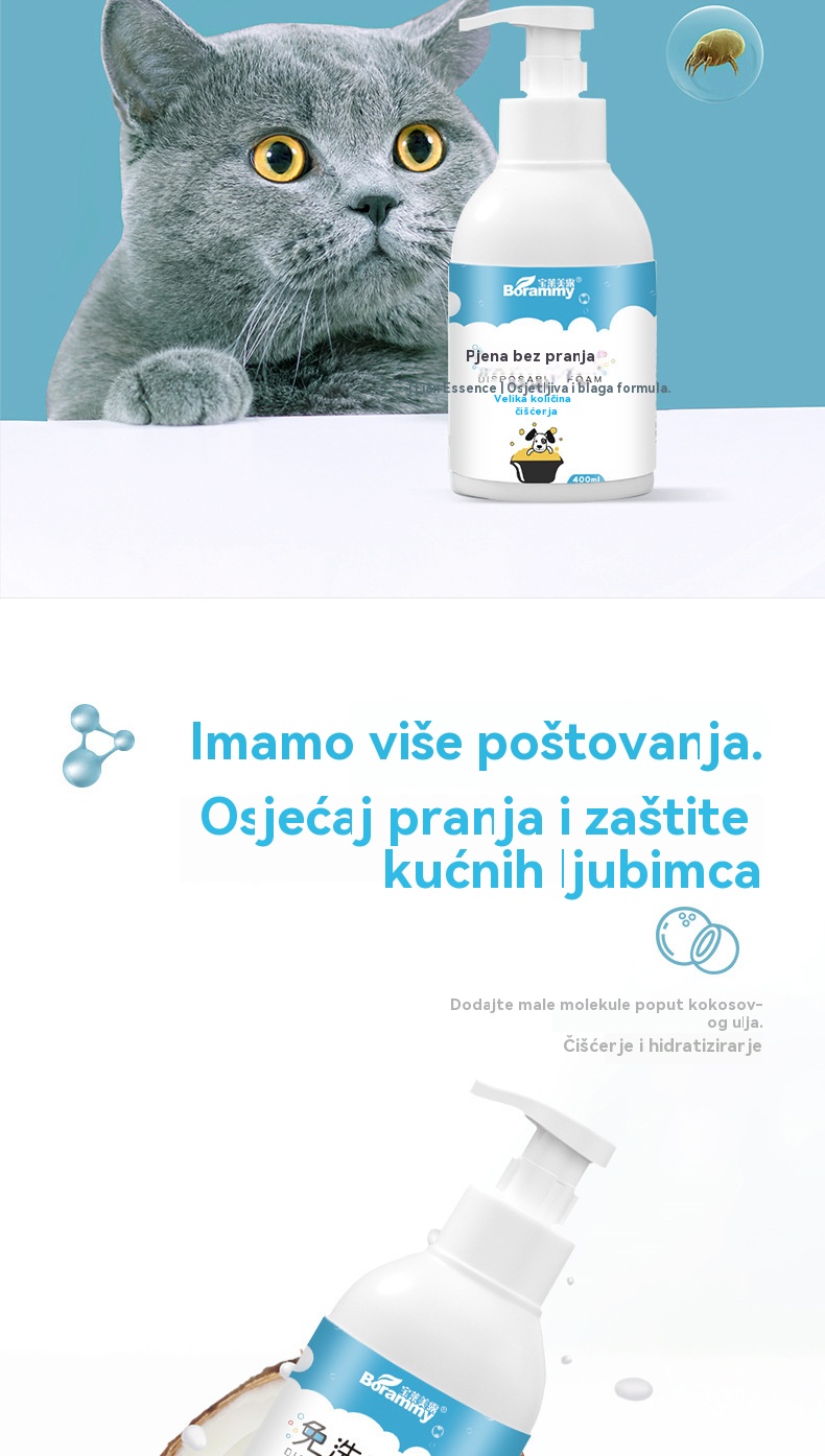 🐱【400 ml + ručnik + čelični češalj】🐈 Bez ispiranja, nježna deodorizirajuća pjena na biljnoj bazi za kućne ljubimce – Za svježinu i čistoću, pogodna za mačke i pse