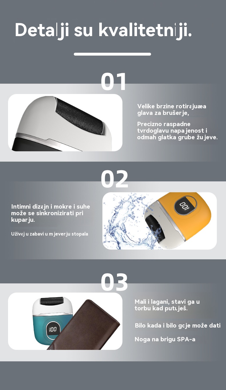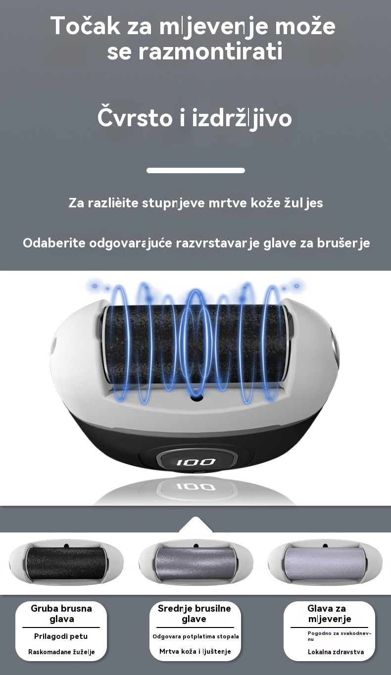 ✨【Kupi 1, dobi 1 gratis】🔥【14 € po komadu】🦶 Električni odstranjivač žuljeva i mrtve kože – snažan motor, 3 izmjenjiva nastavka i LED zaslon za glatka i zdrava stopala kod kuće! (2 stavke)