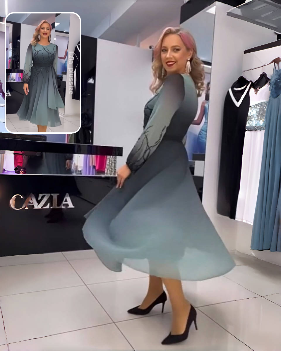 👗✨【S-5XL】Fusta de șifon de lux vopsită cu strasuri de toamnă în număr