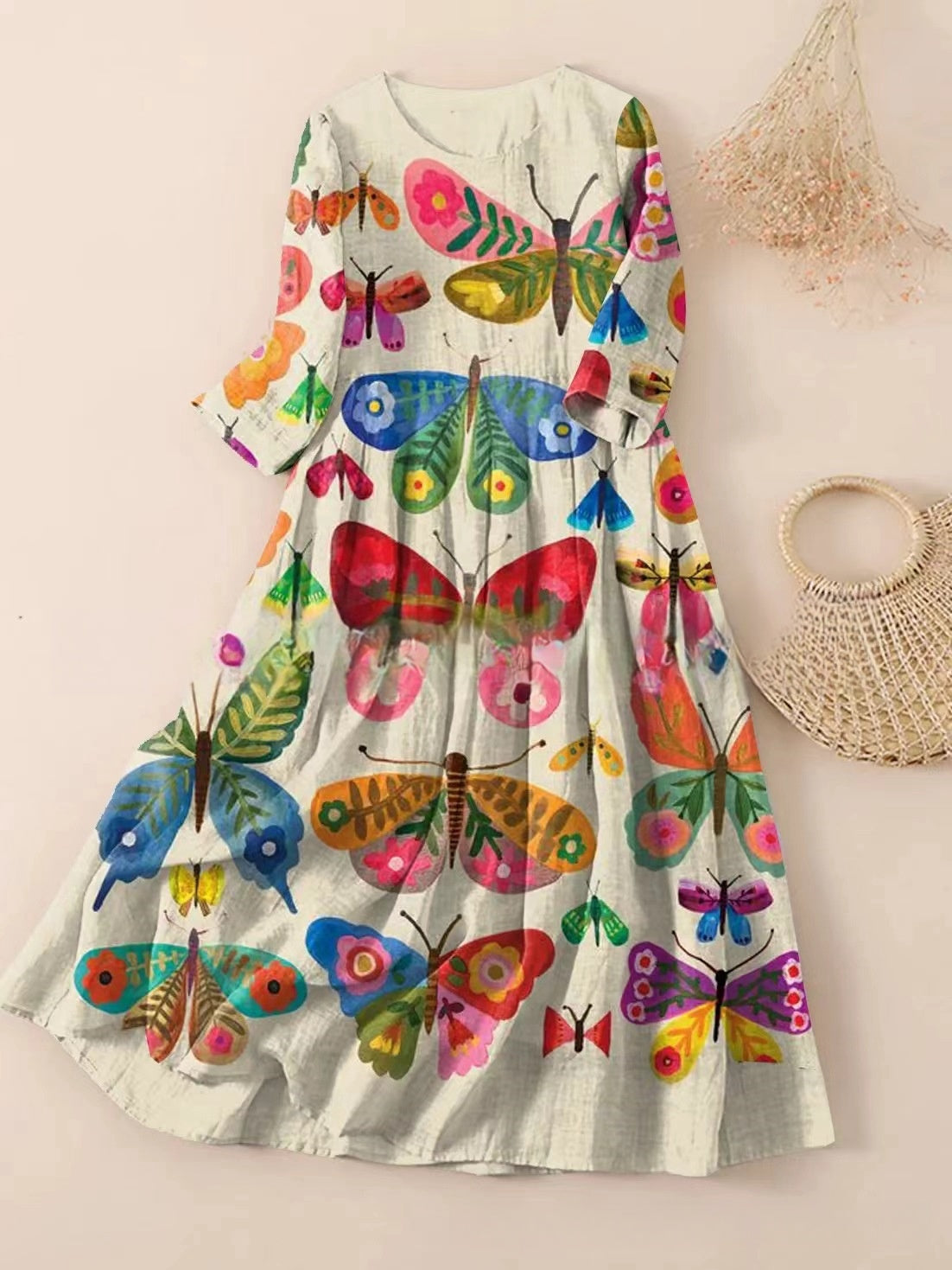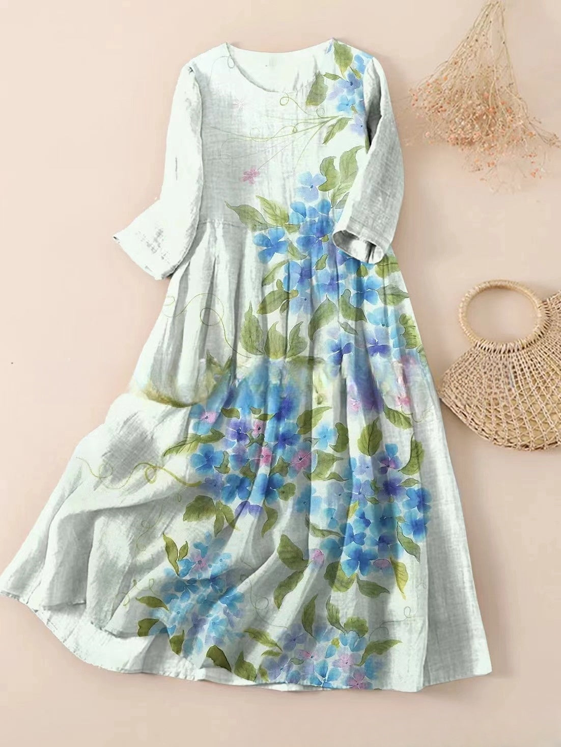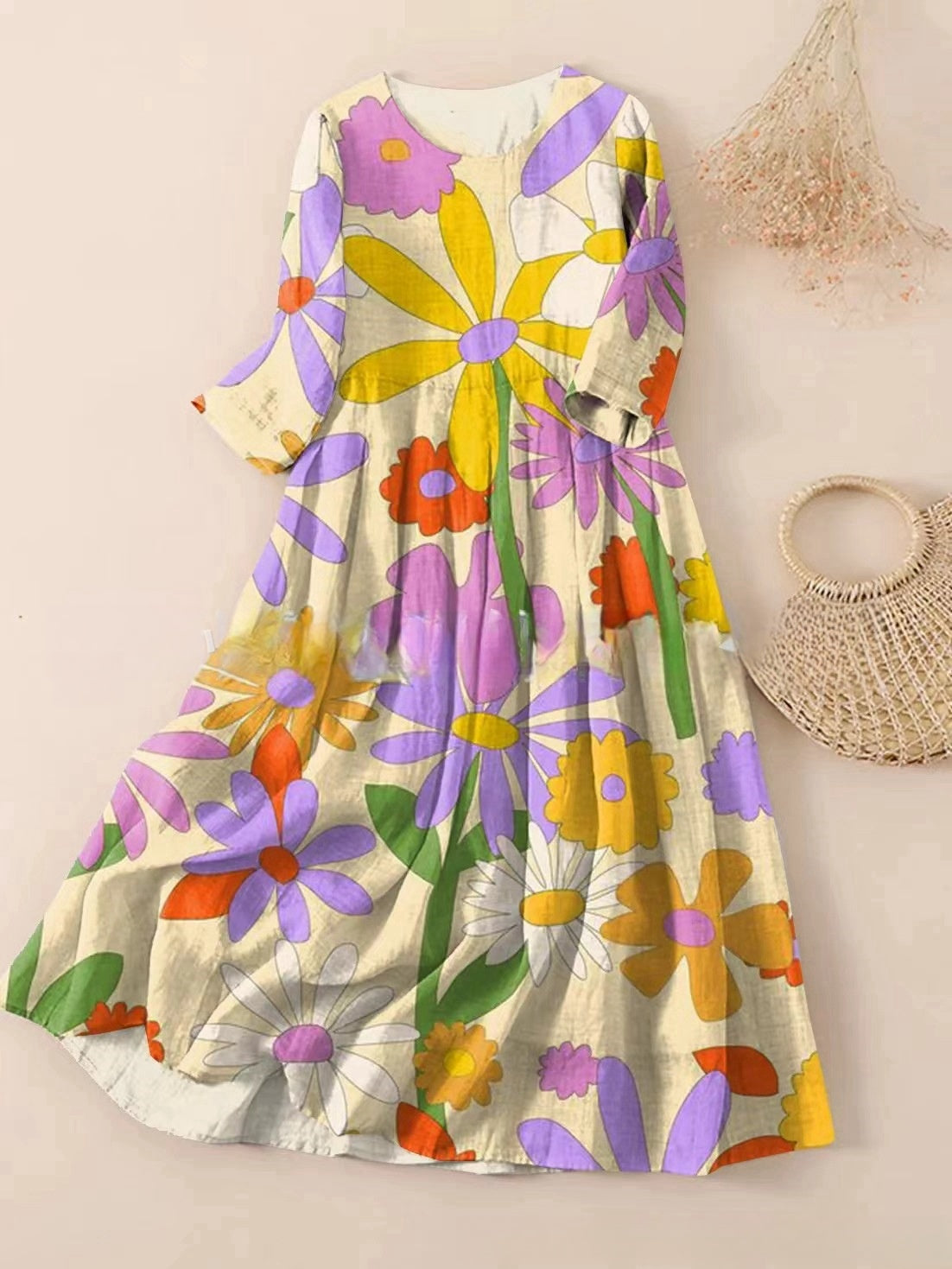 【S-3XL】🌼2025 noua rochie plisata cu imprimeu floral cu gat rotund🌸