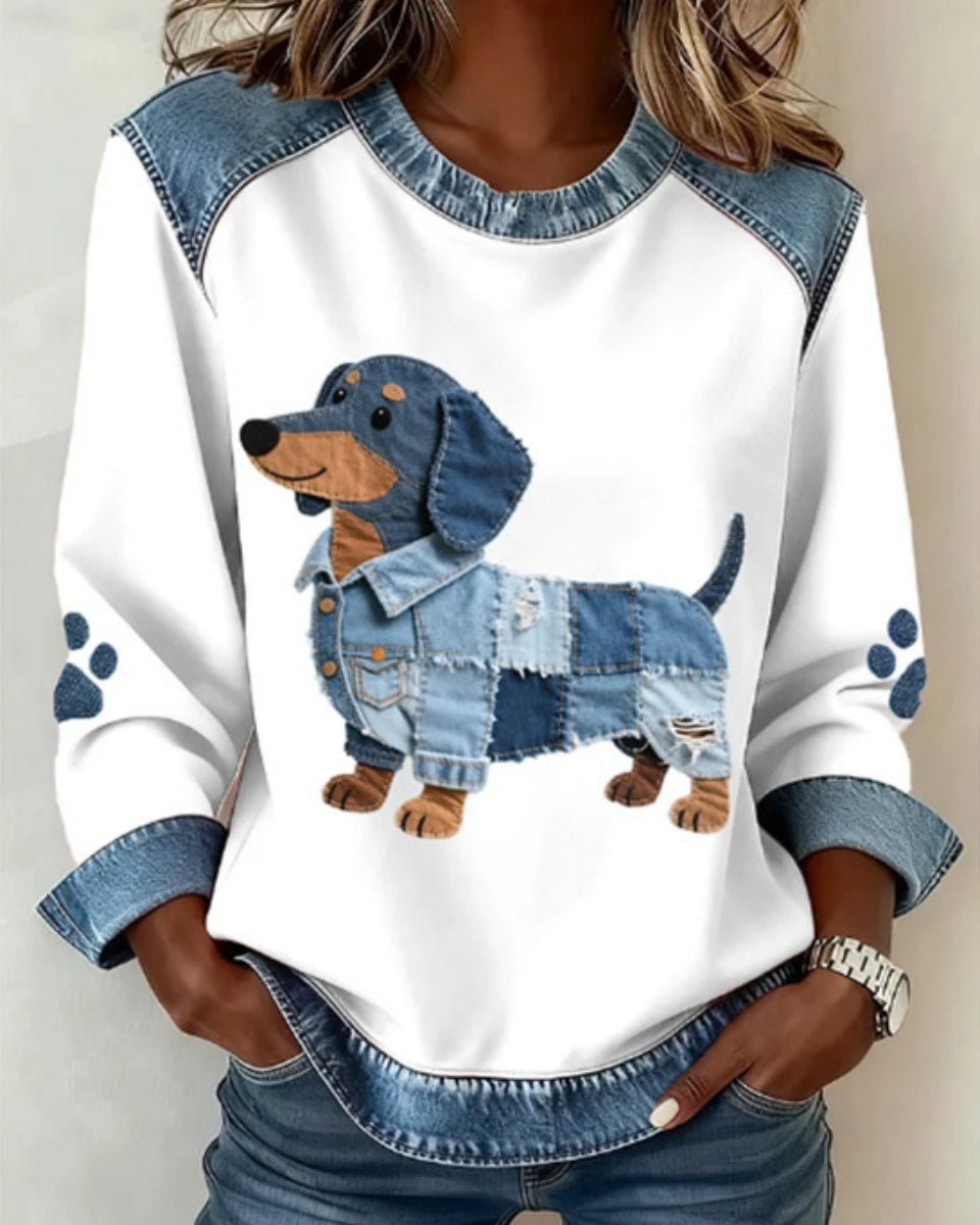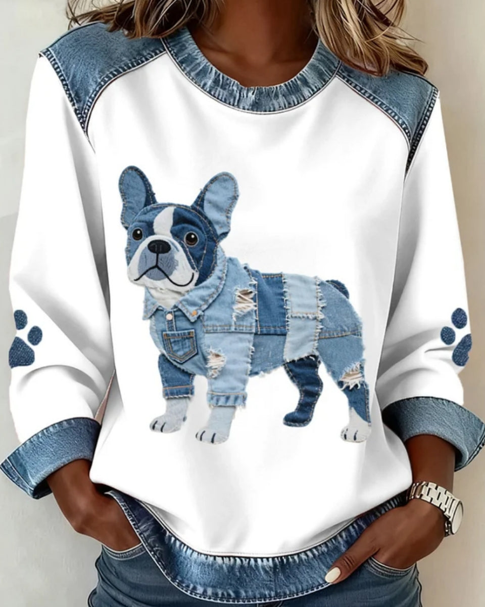 🔥【S-5XL】💥Dámska pohodlná mikina s denimbovými detailmi, módna potlač, voľný a univerzálny strih